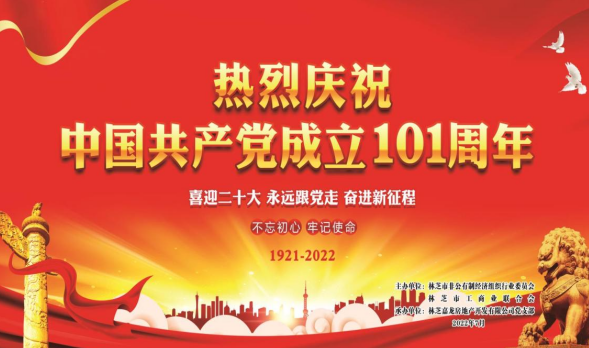 一百零一年前的七月一个伟大的政党中国共产党庄严成立了,一面火红的旗帜冉冉升起,2022年7月1日林芝市非公有制经济组织行业委员会,林芝市工商业联合会,林芝市嘉龙房地产开发有限公司党支部联建庆七一文艺汇演。