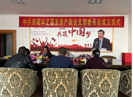 中共西藏林芝嘉龙房产联合支部委员会西嘉龙发(2021)02号简报2021年11月29日星期一上午林芝市工商联党组书记,市非公经济行业党委书记余水一行和西藏林芝嘉龙房产联合党支部书记罗全德同志,为中共西藏林芝嘉龙房产联合支部委员会揭牌。揭牌完毕后党支部成员、工会、团支部、妇女委员会成员拍照留念。林芝市林芝市工商联党组书记,市非公经济行业党委书记余水一行及西藏林芝嘉龙房产开发有限公司、西藏林芝八一镇永